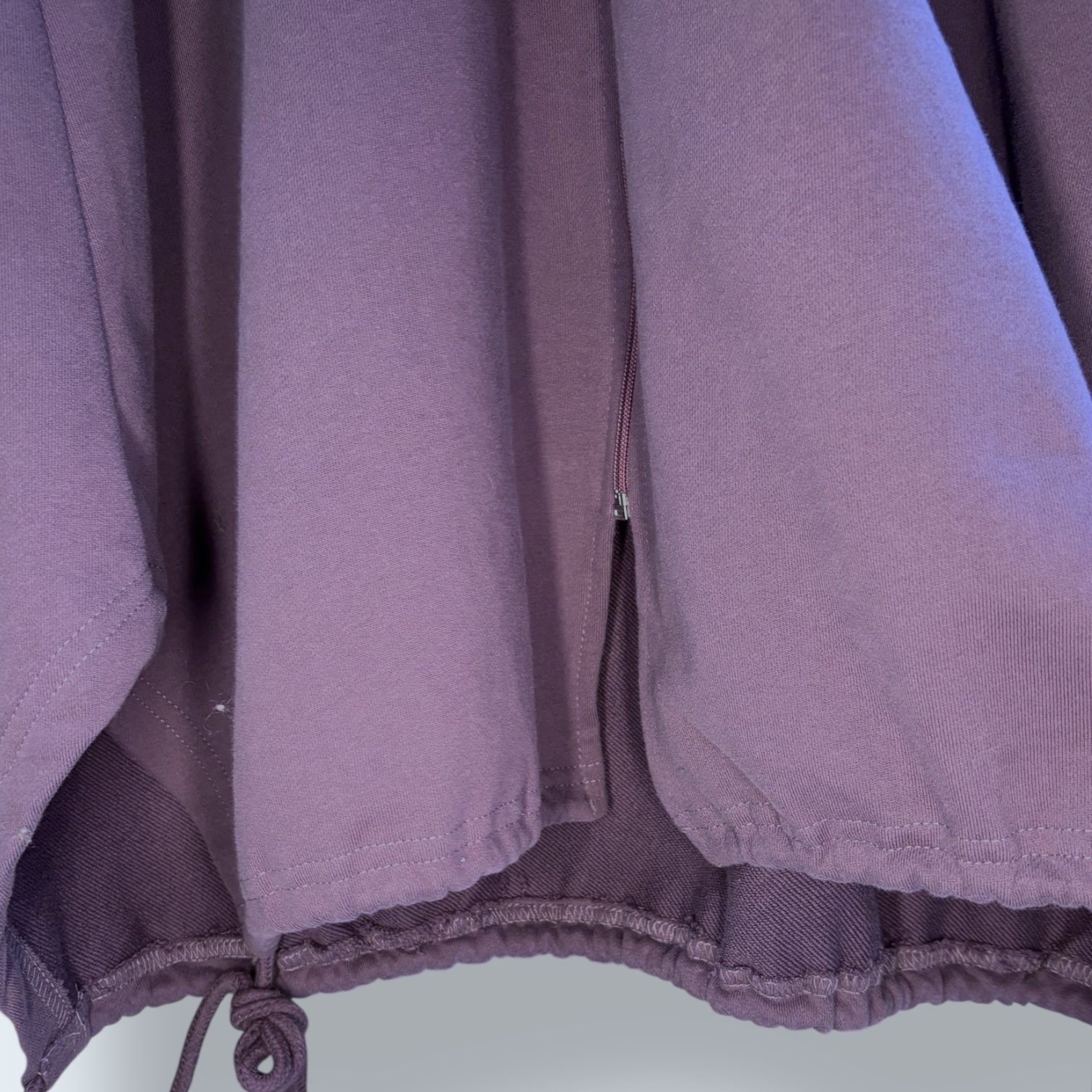 Ta długa bluza z kapturem w stonowanym, przydymionym odcieniu fioletu łączy w sobie wygodę i minimalistyczny styl, tworząc doskonałą bazę do codziennych stylizacji. Swobodny, lekko oversize’owy krój miękko układa się na sylwetce, zapewniając komfort noszenia oraz pełną swobodę ruchów, a praktyczne zapięcie na suwak na całej długości umożliwia różnorodne sposoby stylizowania. Głęboki kaptur dodaje całości sportowego charakteru i sprawdzi się w chłodniejsze dni, natomiast długie rękawy podkreślają casualowy styl modelu. Dolne wykończenie ze ściągaczami i ozdobnymi troczkami nadaje bluzie nowoczesnego wyrazu oraz pozwala subtelnie regulować jej kształt. To uniwersalna propozycja, która świetnie komponuje się zarówno z legginsami, jak i jeansami, tworząc wygodny, a zarazem modny zestaw na co dzień.